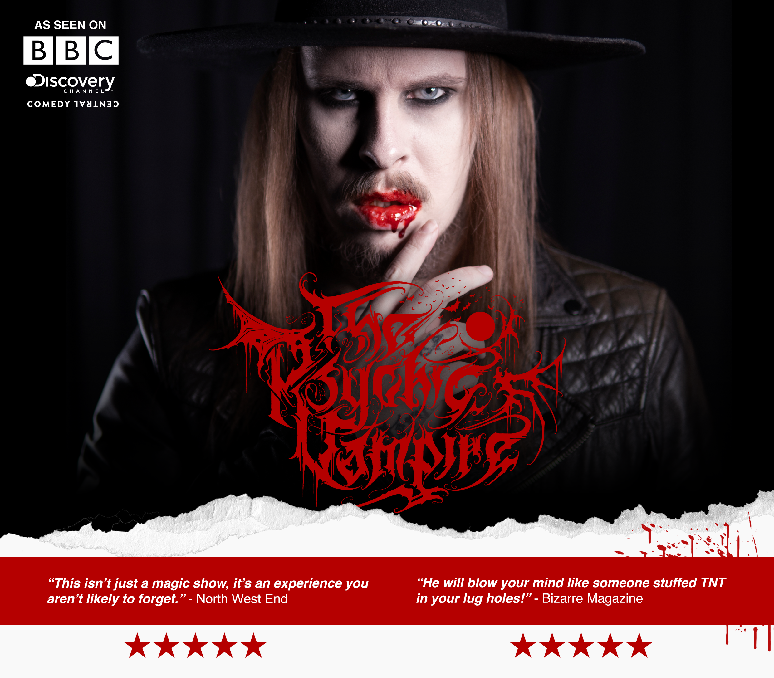 With bases in London and Los Angeles;The Psychic Vampire brings high impact entertainment that looks like a mind-reading show, but feels like a horror movie.